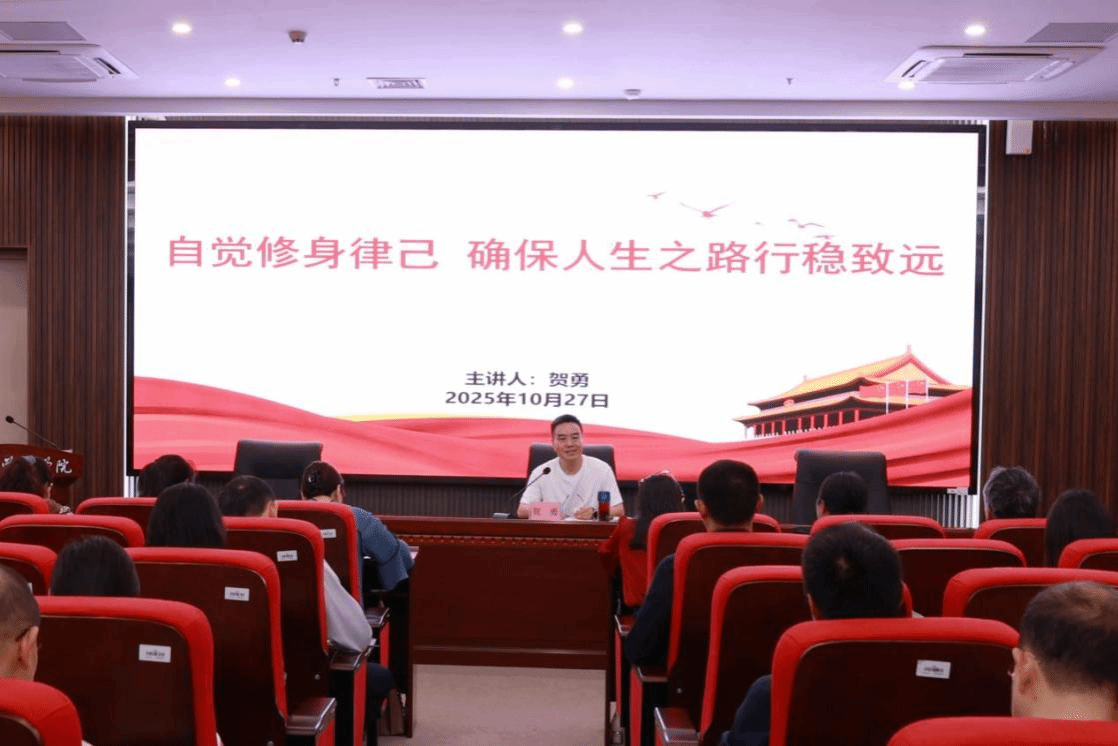 校党委常委、纪委书记、监察专员贺勇以《自觉修身律己确保人生之路行稳致远》为题,为现场及线上参会人员讲授了一堂深刻且生动的清廉文化专题讲座。凭借十几年丰富的纪检工作经验,贺书记将理论阐释与实际案例紧密结合,从“清醒把握形势任务、始终保持政治清醒与坚定、始终坚守纪法红线和底线、不断夯实为民情怀”四个维度,为教职工敲响廉洁警钟。同时,他深入解读“人性之殇、破窗效应、鸵鸟心态、墨菲定律、囚徒困境”5个人性特点,细致剖析人们在侥幸心理驱使下的错误抉择,深刻阐明了高校教职工廉洁自律对于学校高质量发展的极端重要性。贺书记着重强调,高校并非法外之地,全体干部职工需自觉修身律己,共同筑牢拒腐防变思想防线,以廉洁担当护航学校各项事业行稳致远,真正践行“清正廉洁守初心”的使命担当。